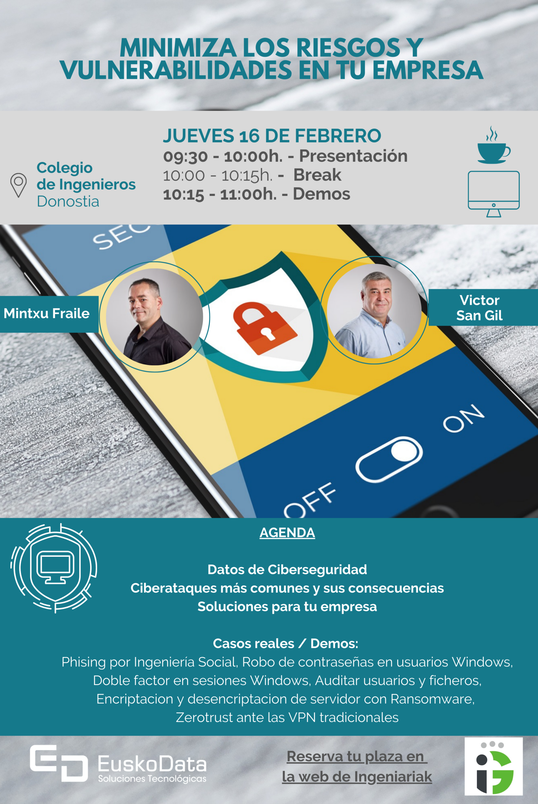 Ponentes: Mintxu Fraile y Victor San Gil de Euskodata, Experto de Ciberseguridad.